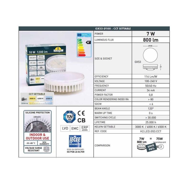 Al igual que todos los productos FUMAGALLI, su estructura está fabricada en resina a prueba de golpes, resistente a oxidación, corrosión y a los rayos UV. Incorpora un difusor de policarbonato esmerilado y en su interior incluye una bombilla GX53 CCT. reemplazable, de larga duración y alto rendimiento.