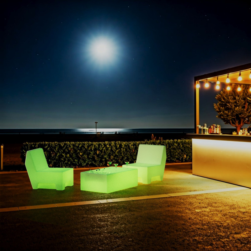 Mesa LED de exterior que aporta un toque moderno y estilizado a cualquier ambiente. Personaliza la atmósfera según tu preferencia con opciones que van desde tonos suaves hasta colores vibrantes.