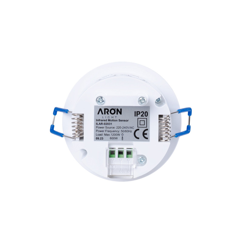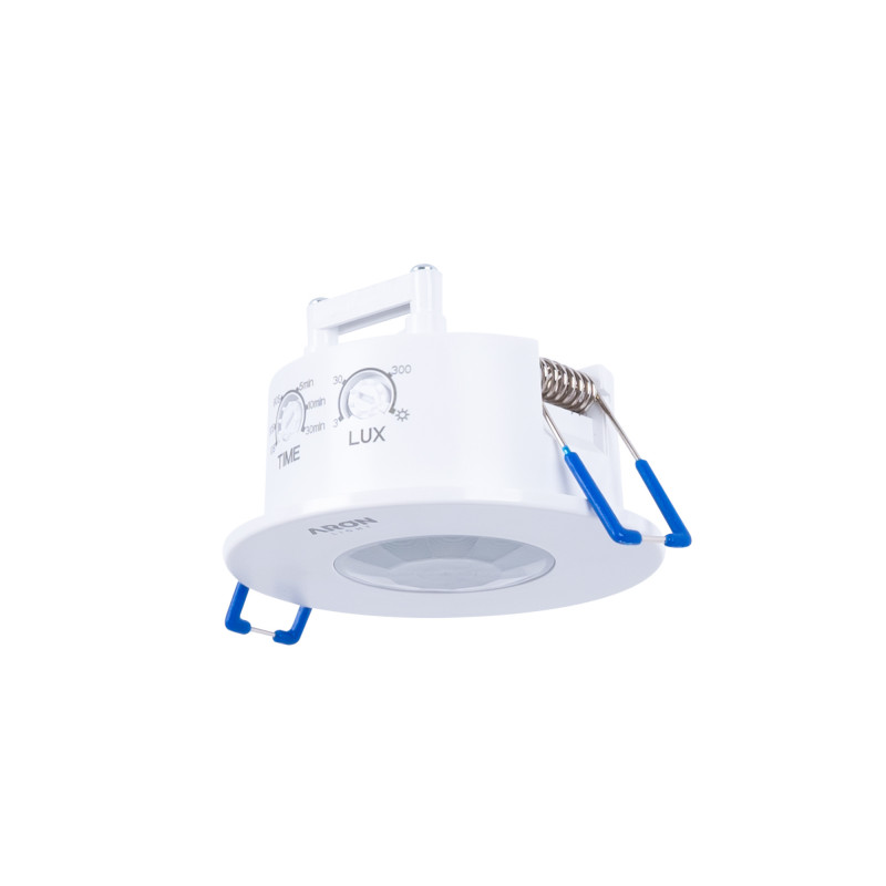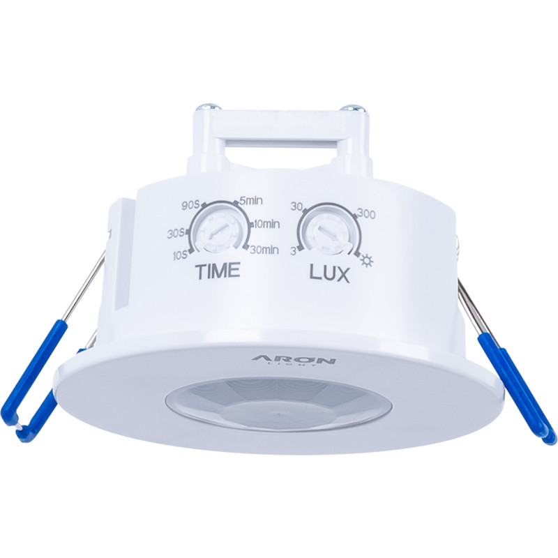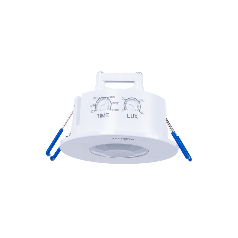 Dit bespaart veel energie, omdat de sensor de verlichting alleen inschakelt wanneer hij de aanwezigheid van mensen detecteert. Wanneer hij vervolgens detecteert dat er niemand binnen zijn bereik is, schakelt hij de verlichting uit na een vooraf ingestelde tijd tussen 10 seconden en 30 minuten. Het is mogelijk om de uitschakeltijd en de inschakelgevoeligheid van het apparaat te regelen afhankelijk van het omgevingslicht (in een bereik van 3 tot 2.000 LUX).