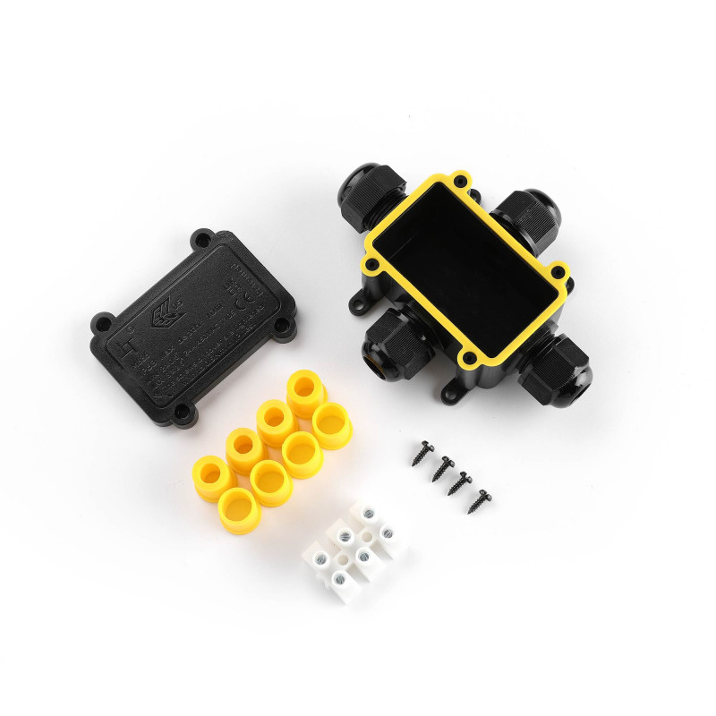 Deze waterdichte aftakdoos is ontworpen voor veilig aftakken in veeleisende omgevingen. Ideaal voor buitengebruik, onderdompelbaar en bestand tegen stof en vocht.