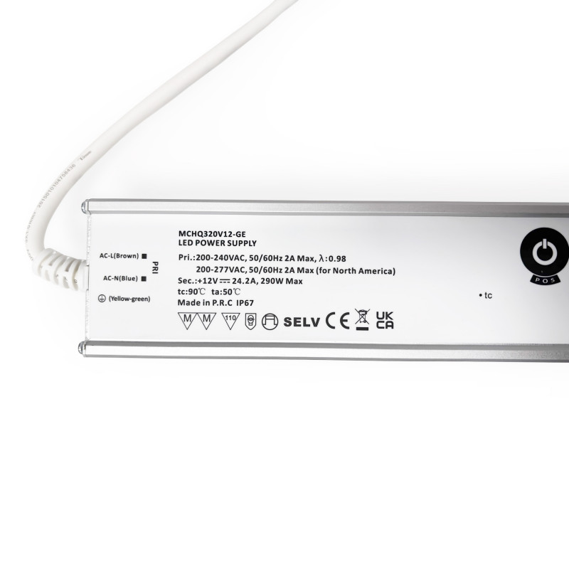 Deze voeding is de ideale oplossing voor het voeden van LED systemen en armaturen met een bedrijfsspanning van 12V en een maximaal vermogen van 290W, waarbij een uitgangsstroom van maximaal 24,2A op een stabiele en veilige manier wordt geleverd.