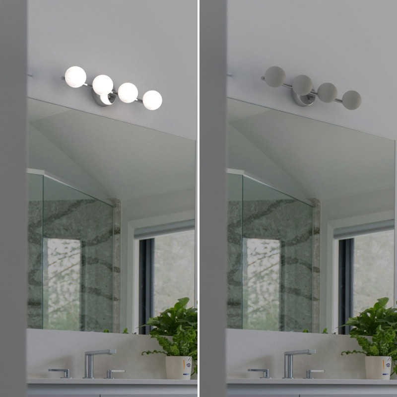 - Modern ontwerp: chromen staaf met 4 diffuserbollen (elk 3W) en een totale lengte van 49 cm.