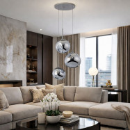 - Eenvoudige installatie: De lampenkappen zijn opgehangen aan een centrale rozet en worden ondersteund door dunne, in hoogte verstelbare transparante kabels, waardoor ze eenvoudig te installeren zijn.