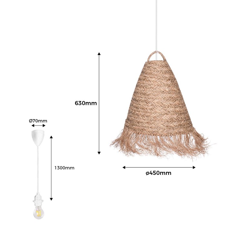 Deze lamp accepteert elke E27 lamp (niet inbegrepen) en heeft 3 opties van fleuron en kabel, verstelbaar in hoogte, afhankelijk van de omgeving waarmee je de lamp wilt combineren (wit, zwart en natuurlijk touw).