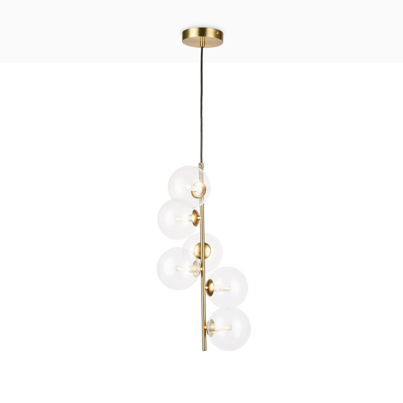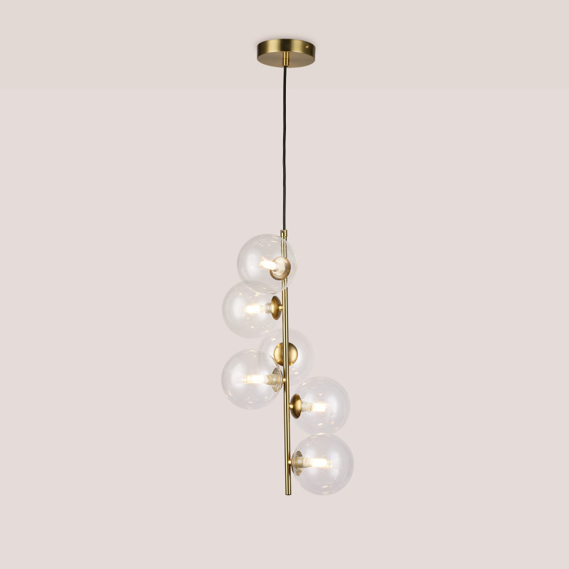 - Elegant ontwerp: Samengesteld uit 6 transparante glazen bollen en een centrale gouden structuur, past deze lamp bij verschillende decoratieve stijlen.
