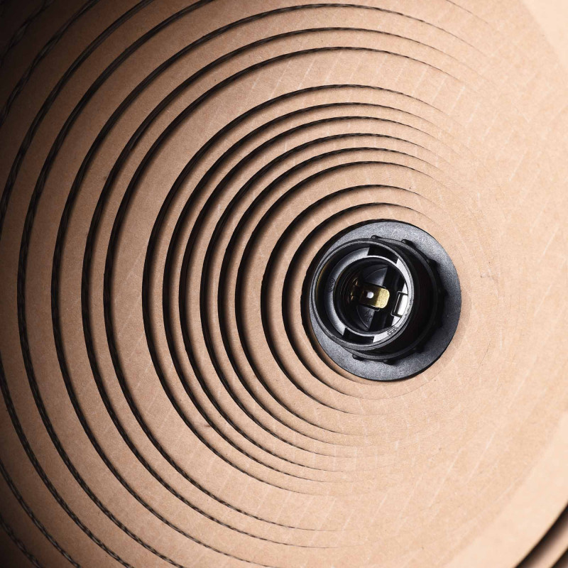 - Ecologisch materiaal: Kap gemaakt van golfkarton, een duurzaam en recyclebaar materiaal dat lichtheid en duurzaamheid biedt.