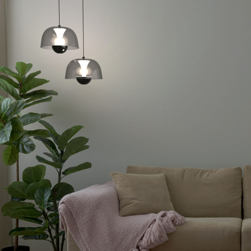 - Onderscheidend design: Gerookte acryl kap met metalen binnenelementen die een geraffineerd visueel spel creëren.