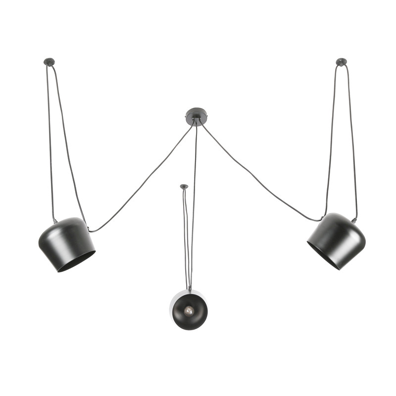 Drievoudige hanglamp met een creatief en avant-gardistisch ontwerp.