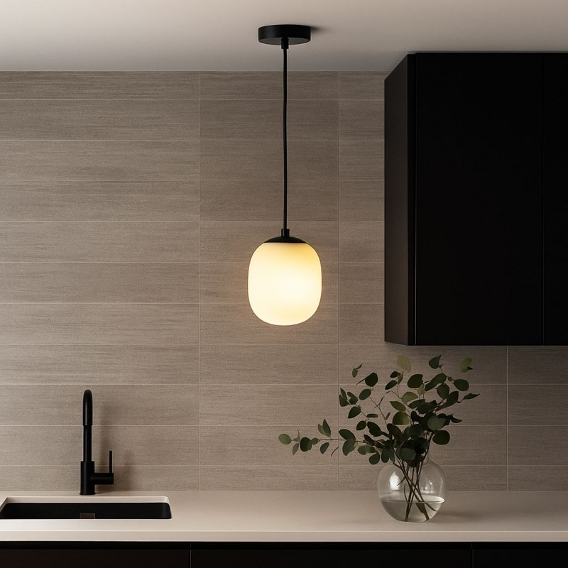 - Eigentijds ontwerp: Opalen glazen kap verzacht het licht en creëert een gezellige sfeer.