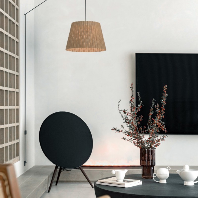 Het licht wordt harmonieus geprojecteerd door het gevlochten vlechtwerk en creëert warme en gezellige ruimtes.