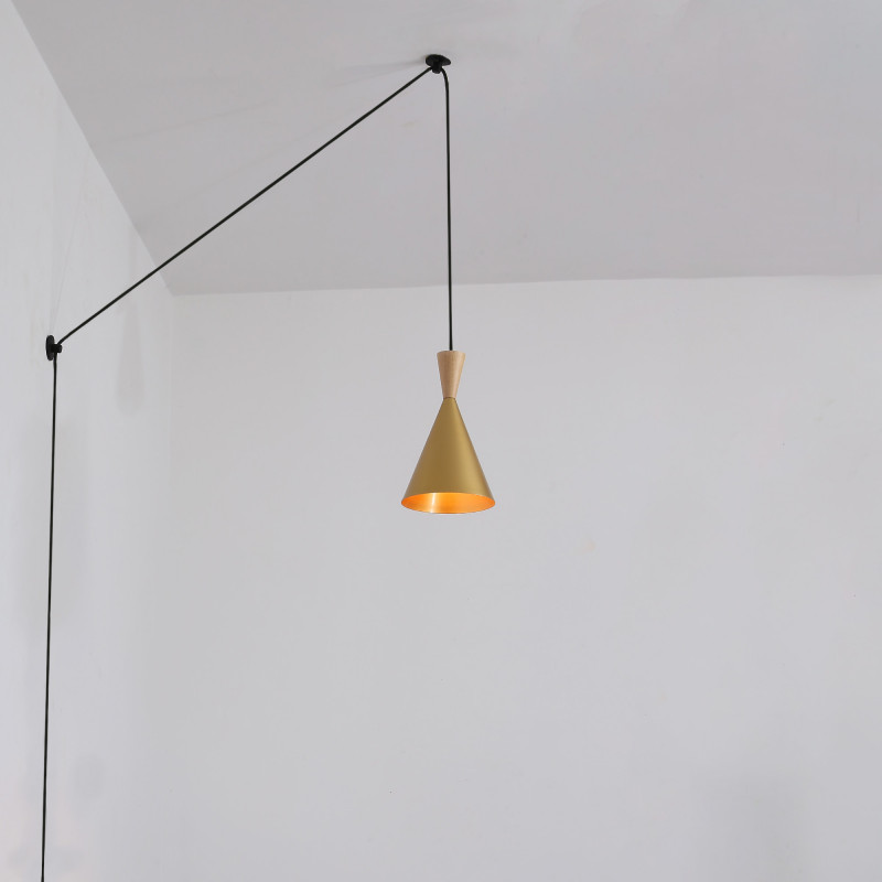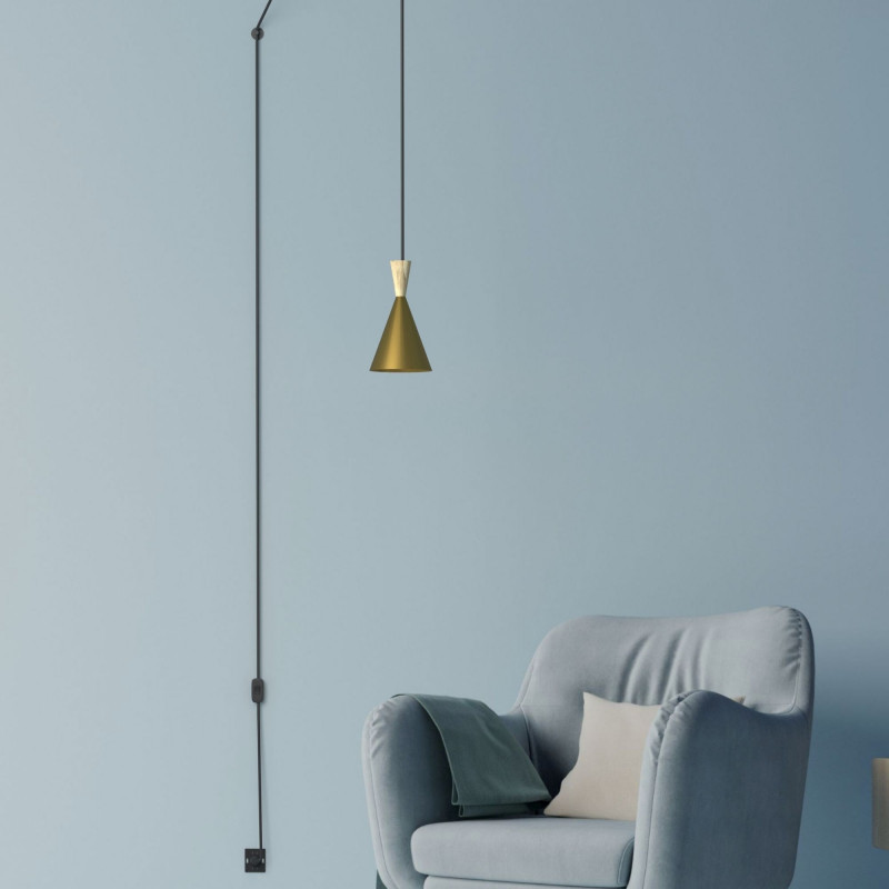 Dankzij de conische vorm en de ondoorzichtige kap biedt de lamp intense en gerichte verlichting, ideaal voor plaatsing boven een tafel, keuken of ruimte waar gerichte verlichting nodig is. De lamp kan alleen of in combinatie met andere units worden geïnstalleerd, waardoor er meerdere creatieve composities mogelijk zijn.