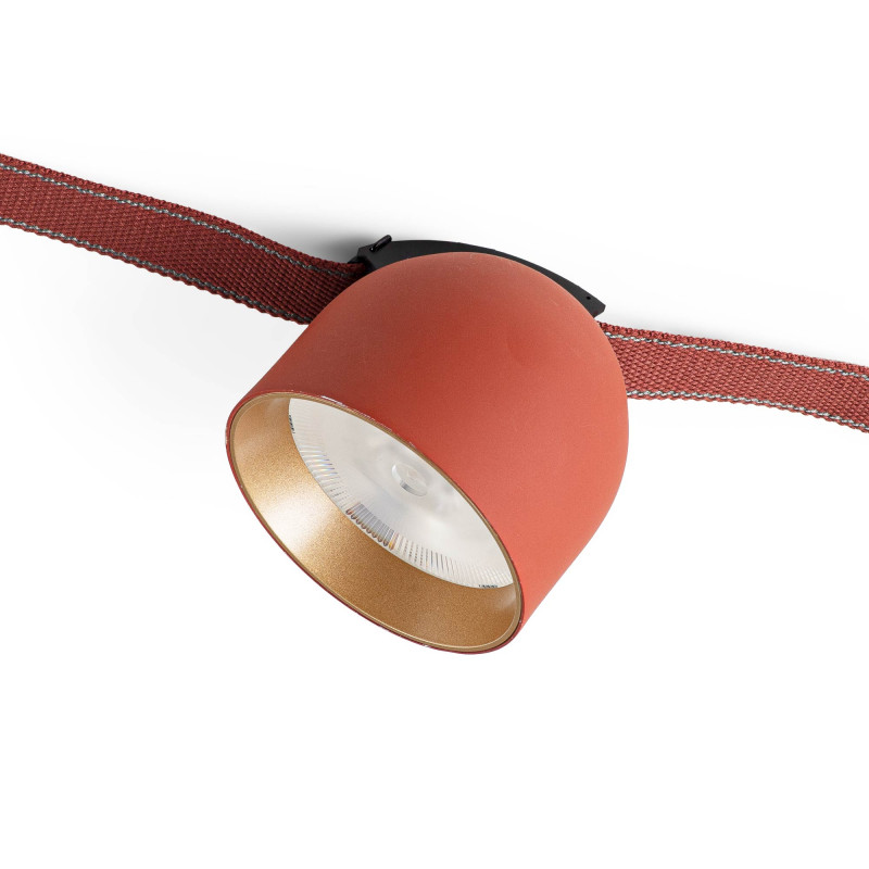 - Eigentijds design: Halve bolvormige lampenkap in terracotta afwerking, harmonieus gecombineerd met de geleidende textieltape.