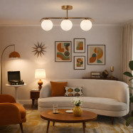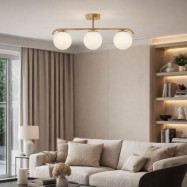 Plafondlamp "Talí" is zorgvuldig ontworpen met drie prachtige opalen glazen bollen.