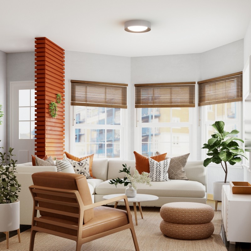 LED plafondlamp in moderne stijl gemaakt van aluminium met een houteffect aan de binnenkant. Dankzij haar ontwerp kan ze geïntegreerd worden in een brede waaier aan decoraties.