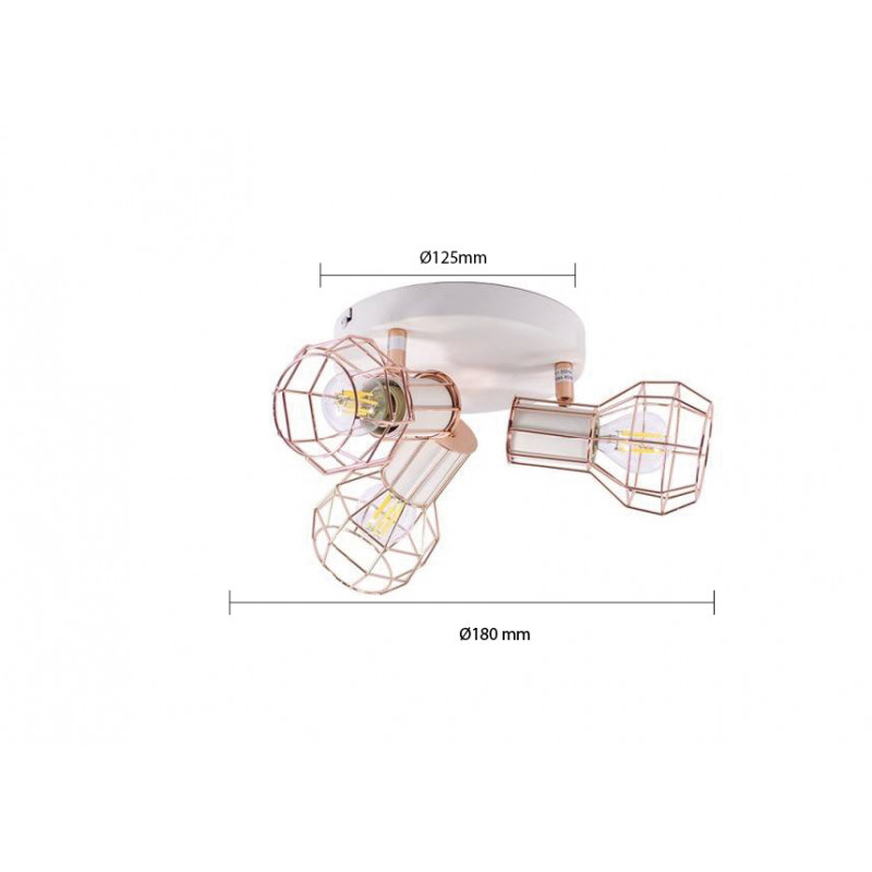 Moderne en minimalistische plafondlamp met drie spots voor E14 gloeilamp (niet inbegrepen). Elk lichtpunt bevat een kooi die niet alleen het decoratieve element van de lamp is, maar ook een beschermende functie heeft voor de gloeilamp. De lichtpunten zijn volledig verstelbaar zodat het licht op het gewenste punt gericht kan worden.