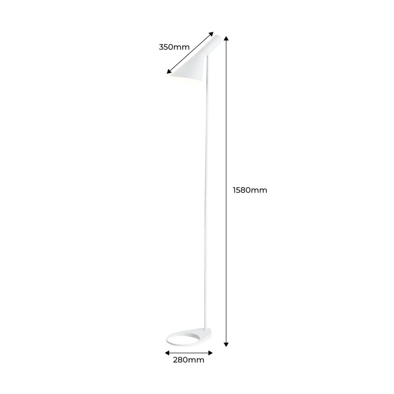 De afmetingen van de lampenkap zijn niet symmetrisch en heeft een conische vorm. De kortste zijde van de buitendiameter is 150 mm met een diepte ten opzichte van de langste zijde van 160 mm. De lamp is ontworpen voor gloeilamp type A60.