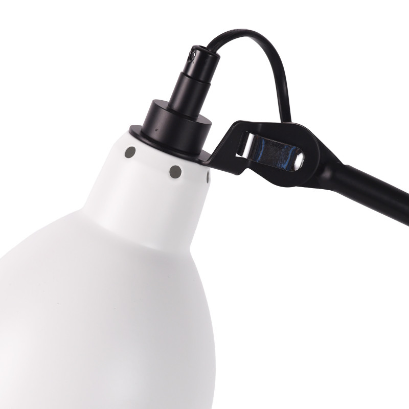 - Scharnierend formaat: De lamp heeft een vaste voet en een scharnierende arm met een verstelpunt waarmee de onderdelen en de kap kunnen worden gekanteld. De kap is 360° draaibaar.
