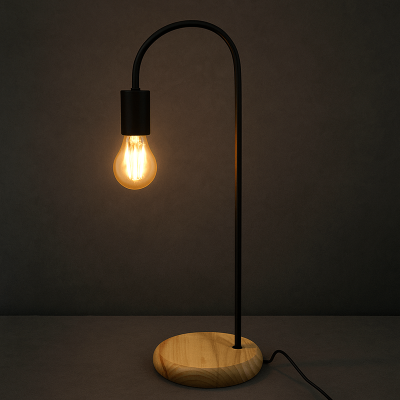 - Hoogwaardige materialen: Houten basis met zwart gelakte aluminium behuizing.