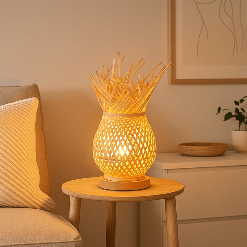 VIMET rieten tafellamp met E27 fitting max. 60W