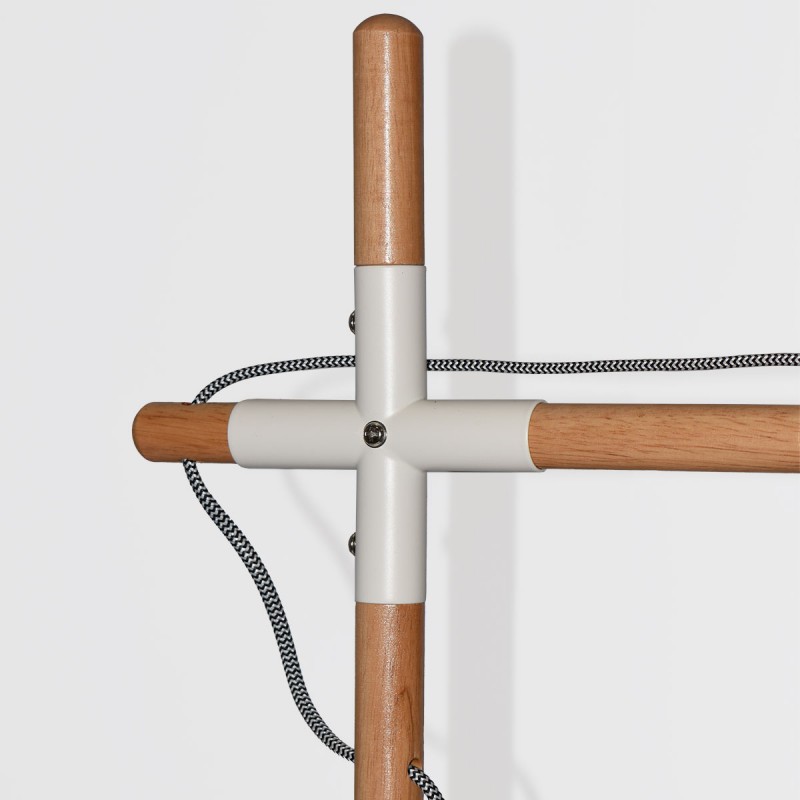 Deze houten tafellamp is Scandinavisch geïnspireerd en biedt een heel speciale stijl. Het snoer dat bij de lamp hoort is zwart en wit, wat de lamp een elegante touch geeft zodat hij op veel verschillende plekken gecombineerd kan worden. Het snoer dat de E27 fitting vasthoudt heeft een originele opstelling, waarbij het snoer rond het hout van de lamp wordt gewikkeld alsof het helemaal natuurlijk is.
