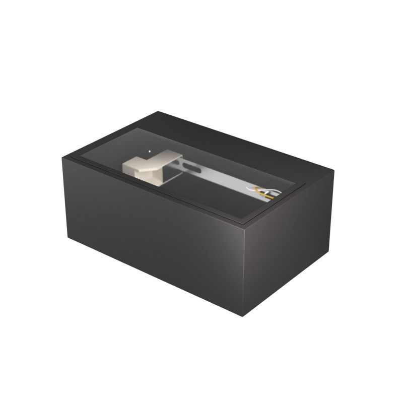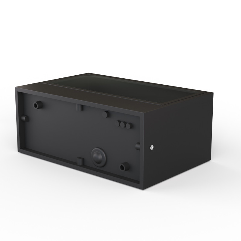 - Structuur in stevig aluminium en glazen diffusors: matzwarte afwerking die een geraffineerde en moderne toets geeft aan de omgeving. De diffusors verbeteren niet alleen de esthetiek, maar optimaliseren ook de lichtspreiding, waardoor elke lichtbundel homogener en efficiënter wordt.