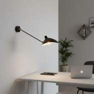 - Verstelbaar en functioneel ontwerp: de arm steekt uit een centrale rozet en maakt het mogelijk het licht naar het gewenste punt te richten. Daarnaast is de kap ook verstelbaar, voor een gerichte en veelzijdige verlichting.