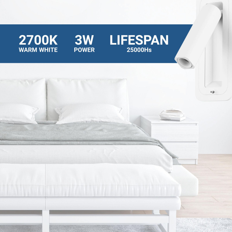 - Geïntegreerde schakelaar: Ontworpen voor maximaal gebruiksgemak, de lamp kan direct vanaf de voet van de wandlamp worden in- en uitgeschakeld.