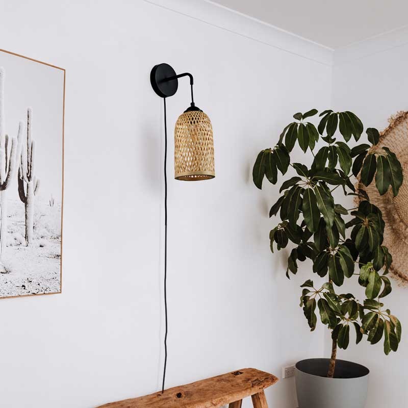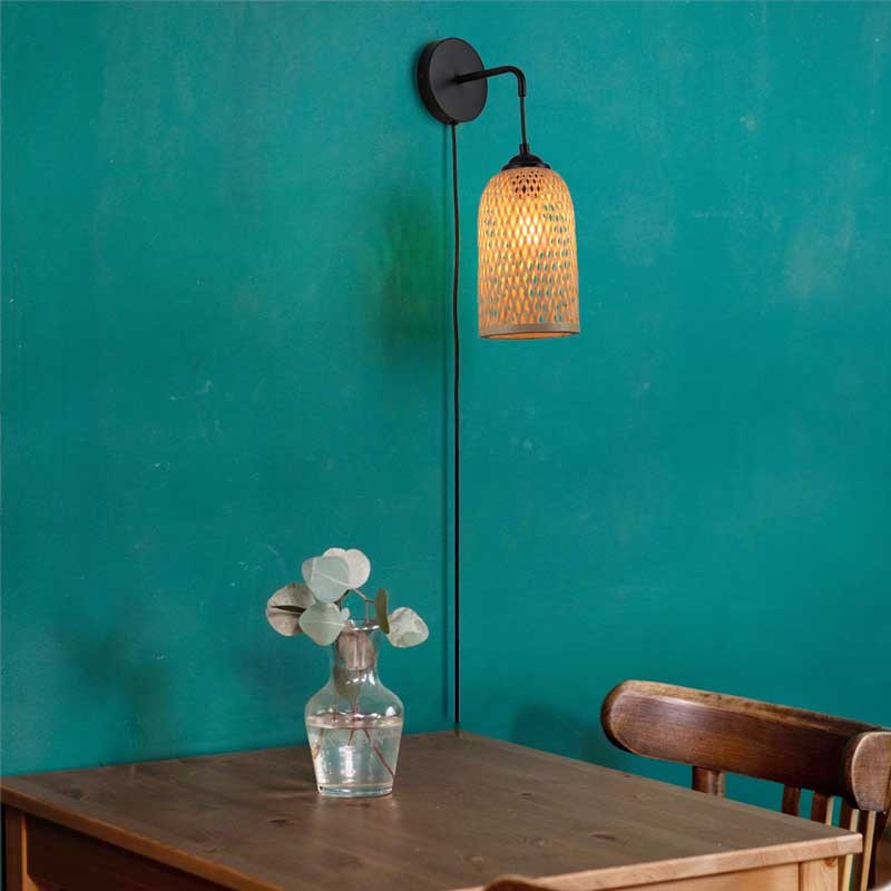 Rieten wandlamp met stekker "Frida" E27