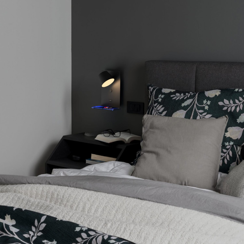 Set x 2 - Leeswandlamp met USB-poort "BASKOP" - Zwart