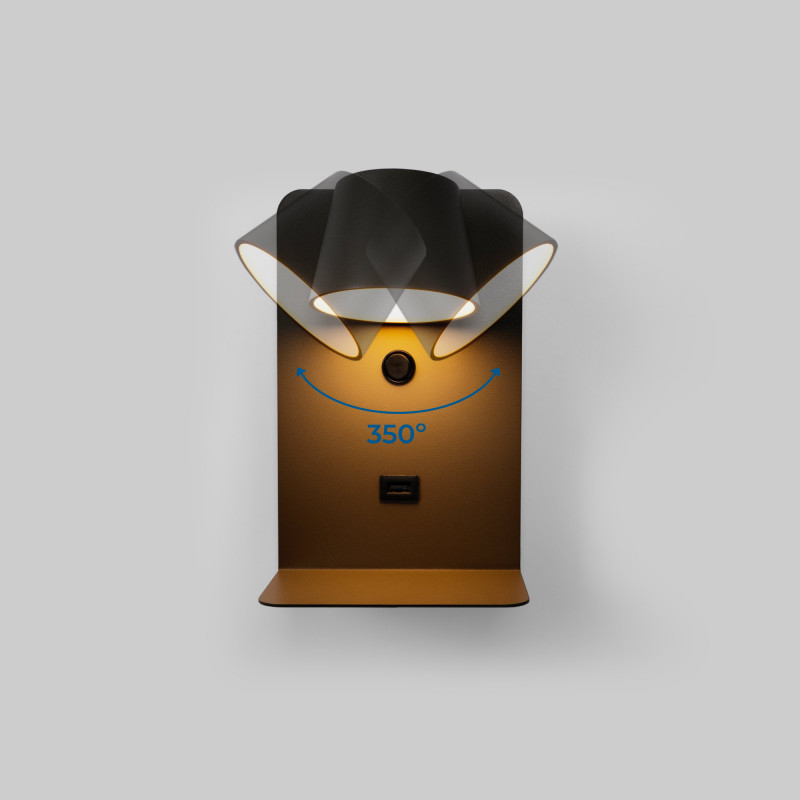 Bovendien is de lamp voorzien van een USB-poort en een metalen voet om de mobiele telefoon te ondersteunen, zodat deze 's nachts kan worden opgeladen.