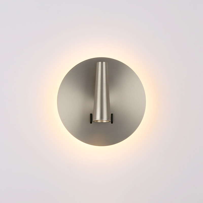 Deze wandlamp heeft een modern ontwerp met een geborstelde metalen afwerking. De cilindrische spot en ronde voet passen bij hedendaagse, industriële en Scandinavische stijlen.