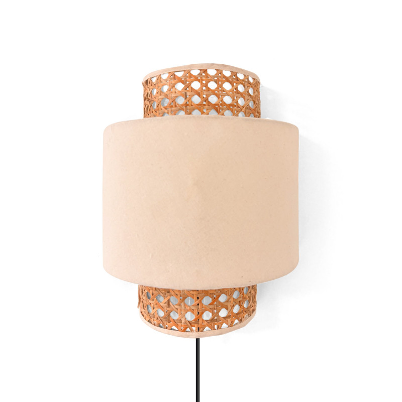 Wandlamp van riet en stof "HANS" - E27 - Schakelaar en stekker