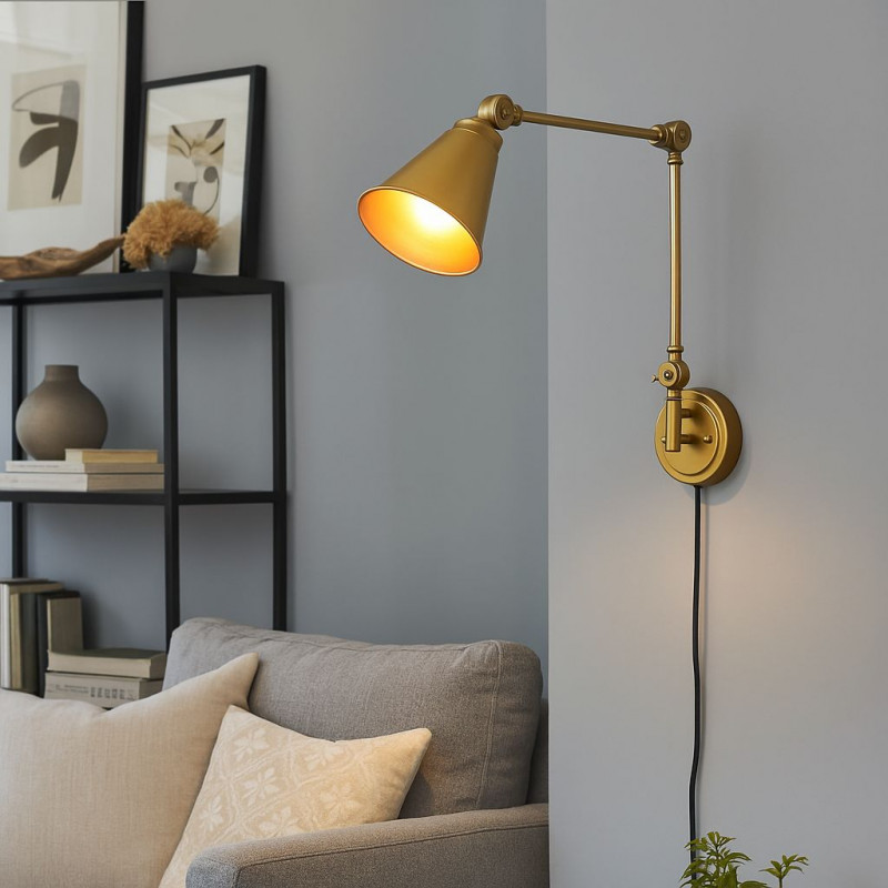 Verstelbare vintage wandlamp met snoer en stekker "Tika".
