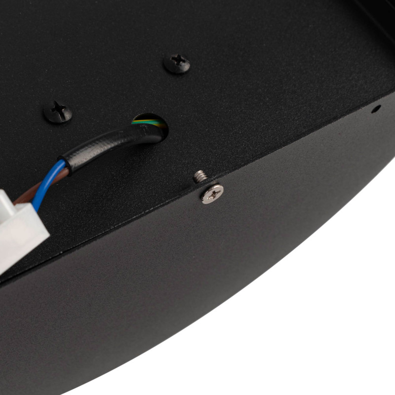 De "Dona" buitenwandlamp combineerteen aluminium behuizing in een matzwarte afwerking met een halfronde transparante polycarbonaat diffuser, waarvan het ontwerp bijdraagt aan de esthetiek van elke ruimte.