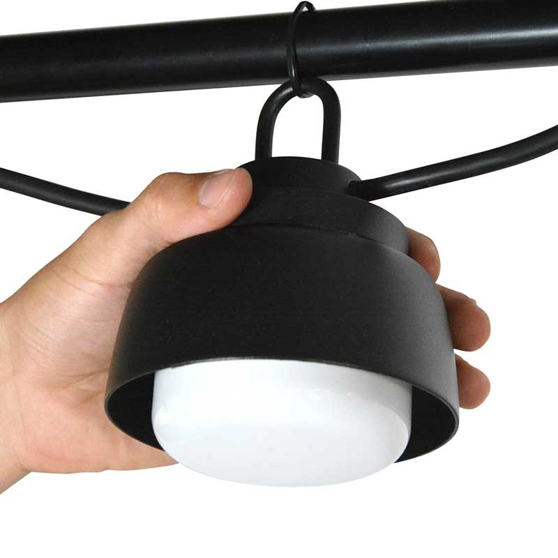 De decoratieve slingers zijn ontworpen met een aluminium kop en een handvat om de lampjes op te hangen waar we maar willen. De IP44 beschermingsgraad maakt het mogelijk om de slingers buiten te hangen, waardoor ze bestand zijn tegen vocht (niet geschikt voor blootstelling aan regen). Deze nieuwe LED-slinger heeft een oosterse stijl en straalt een warme kleurtemperatuur van 3000 Kelvin uit, ideaal om op elke locatie een aangename sfeer te creëren. Met een geïntegreerde SMD 2835 chip van hoge kwaliteit is de lichtsterkte van elke LED lamp 350 lumen en heeft een gedefinieerde openingshoek van de lichtbundel van 120 graden. Elke LED-lamp is 115 mm breed en 138 mm hoog, met een onderlinge afstand van 720 mm. Bedrading en zwarte kop met zes LED-lampjes.