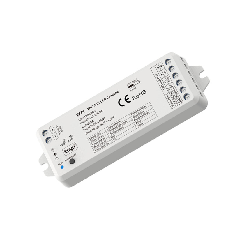 Eenkleurige DIM / CCT controller - WiFi + RF - 2 kanalen: veelzijdige oplossing voor LED strips