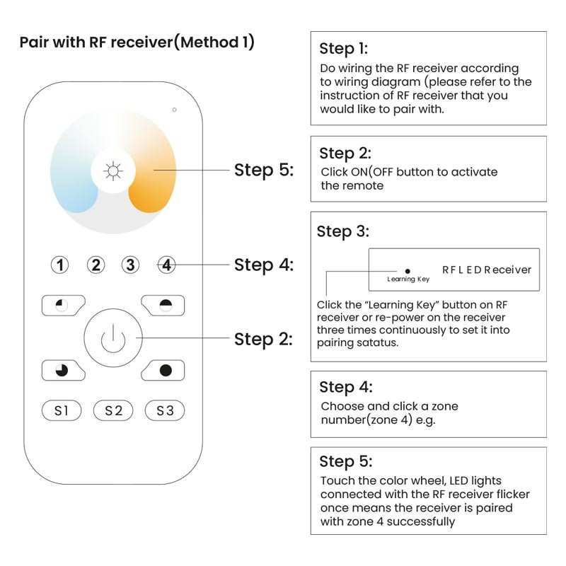 CCT RF touchdimmerbediening voor LED-verlichting tot 4 zones - SUNRICHER - Perfect RF