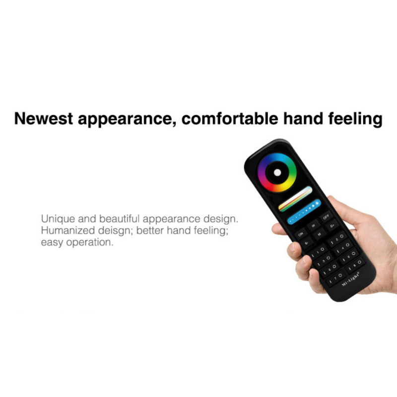 Hij kan 8 verschillende zones regelen en de gewenste groepen en combinaties maken. Voor elke aan te sturen zone is een "Mi-Light" controller nodig. Met andere woorden, om 8 zones onafhankelijk te regelen, zijn 8 controllers en één afstandsbediening nodig.