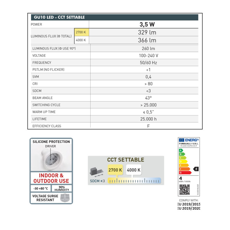 - Kleurtemperatuur: CCT (3000ºK; 4000ºK).