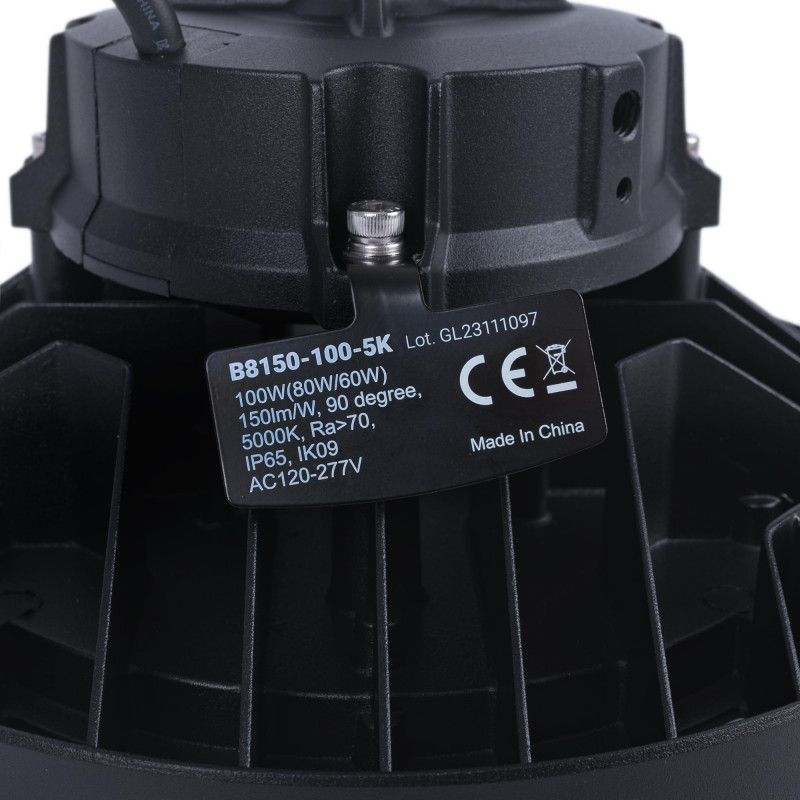 - Zeer efficiënte technologie: Deze lichtkap is uitgerust met Philips Lumileds LED-chips en biedt 150 lm/W, wat zorgt voor een koel witte (5000K) verlichting die helderheid en visueel comfort in grote ruimtes garandeert.