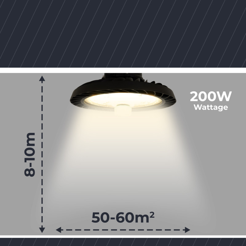 - Maximale efficiëntie: Deze lichtkap biedt een lichtrendement van 170 lm/W en levert verlichting van hoge kwaliteit die helderheid en visueel comfort garandeert in grote ruimten.