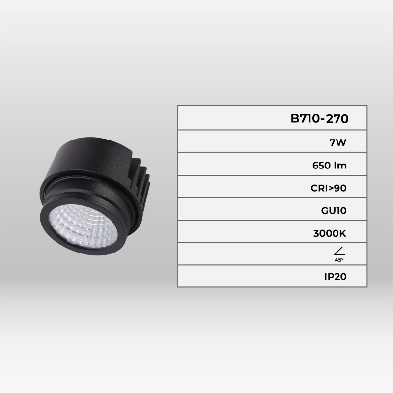 De LED module biedt een lichtrendement van 84lm/W met een vermogen van 7W en straalt een gericht licht uit onder een hoek van 45°.