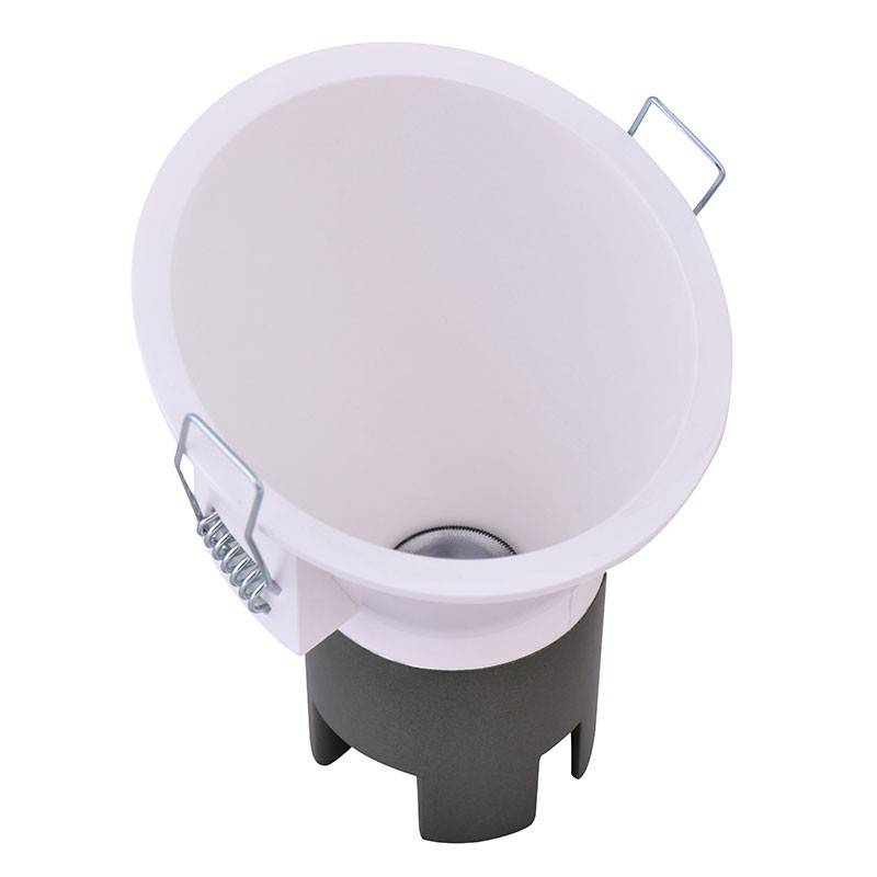 • Compact formaat en eenvoudige installatie: Met een diameter van 70 mm en een plafonduitsnede van 65 mm past deze downlight perfect in kleine ruimtes zonder dat er een grote diepte nodig is.