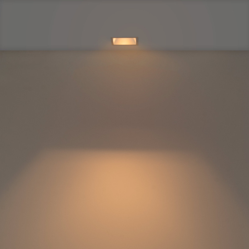 Vierkante inbouwspot behuizing met asymmetrische verlichting.