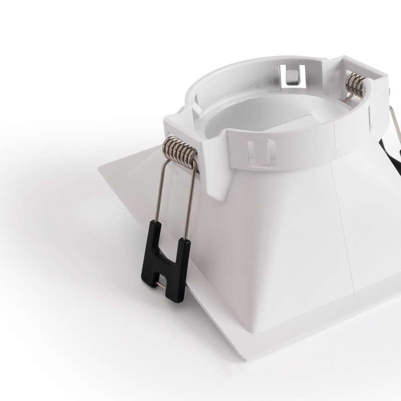 Deze schuine inbouwdownlight bezel combineert een minimalistisch en elegant vierkant ontwerp met geavanceerde technologie voor wie op zoek is naar moderne en functionele verlichting.