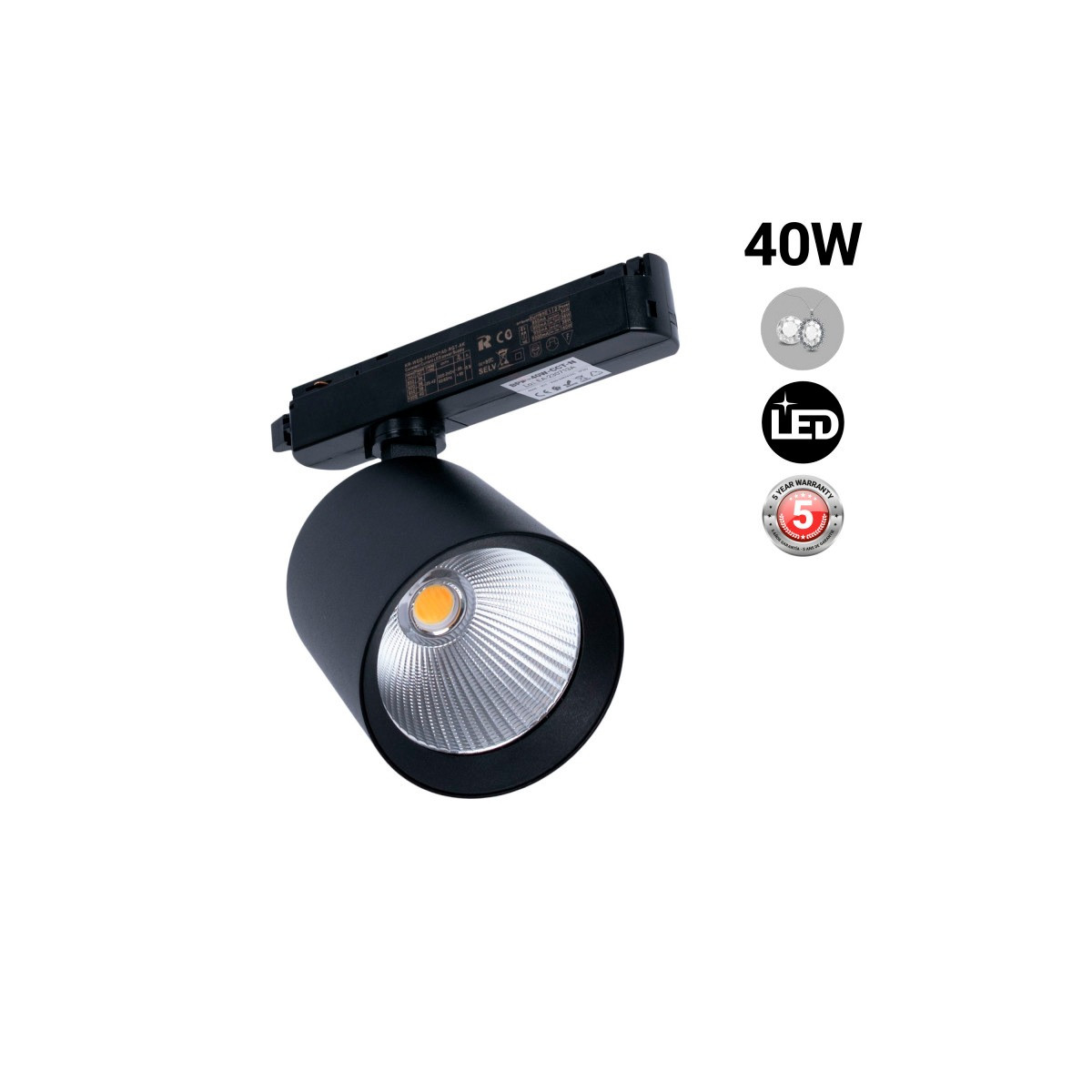 LED railspot enkelfasig - 40W - Juwelierszaken - Driver Philips Xitanium