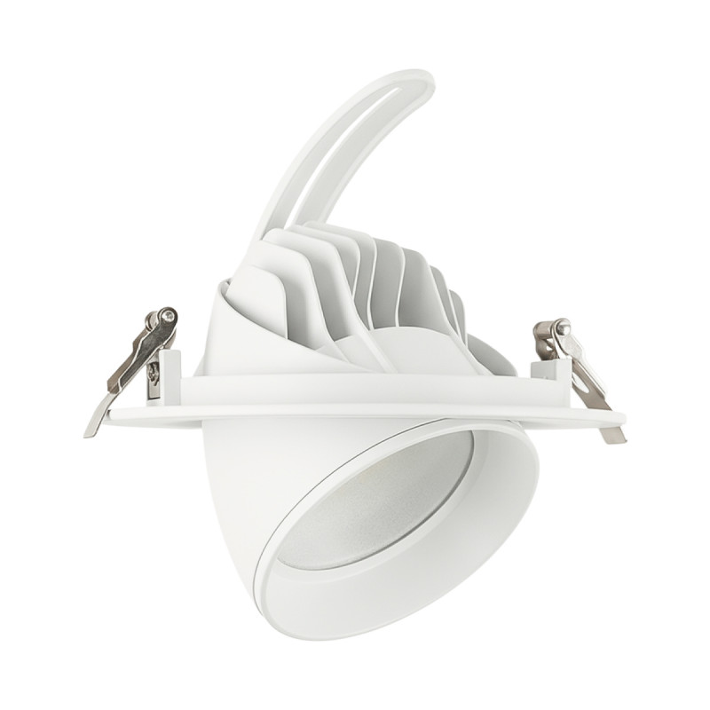 Deze verstelbare LED-downlight van 38 W is de perfecte oplossing voor het verlichten van commerciële en professionele ruimtes. Dankzij het kantelbare ontwerp kan het licht nauwkeurig worden gericht, ideaal om producten in vitrines, toonbanken of etalages te benadrukken.