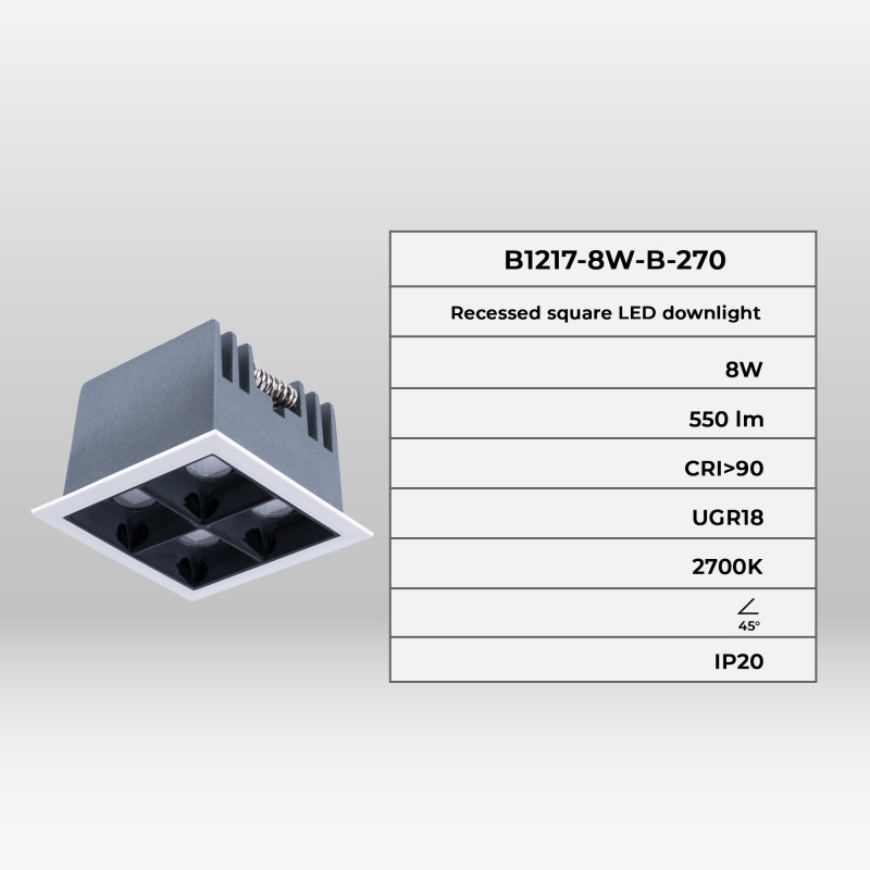 Hij heeft een lage verblindingsindex (UGR<18), waardoor hij gebruikers een hoog verlichtingscomfort biedt. Bovendien maakt de CRI>90 het een ideale optie voor projecten die een hoge kleurindex vereisen.
