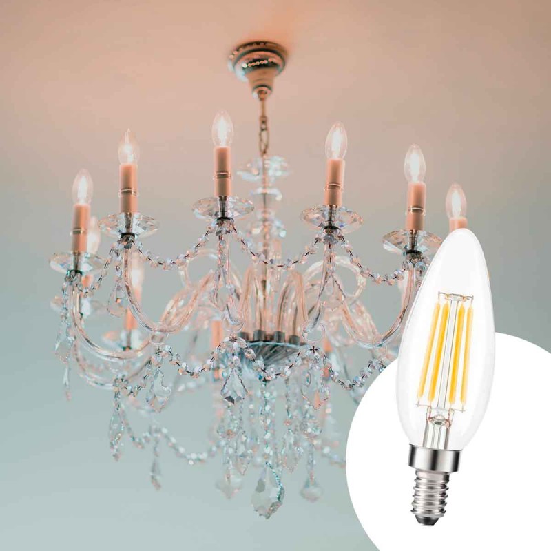 De LED Kaarslamp 5W Keramische gloeidraad en helder glas is een lamp, ideaal voor het vervangen van oude kaarslampen tot 50W. Visueel zijn ze elegant, goed afgewerkt en de gloeidraden zijn te zien dankzij het transparante glas, waardoor deze kaarslamp de perfecte aanvulling is op elke lamp.