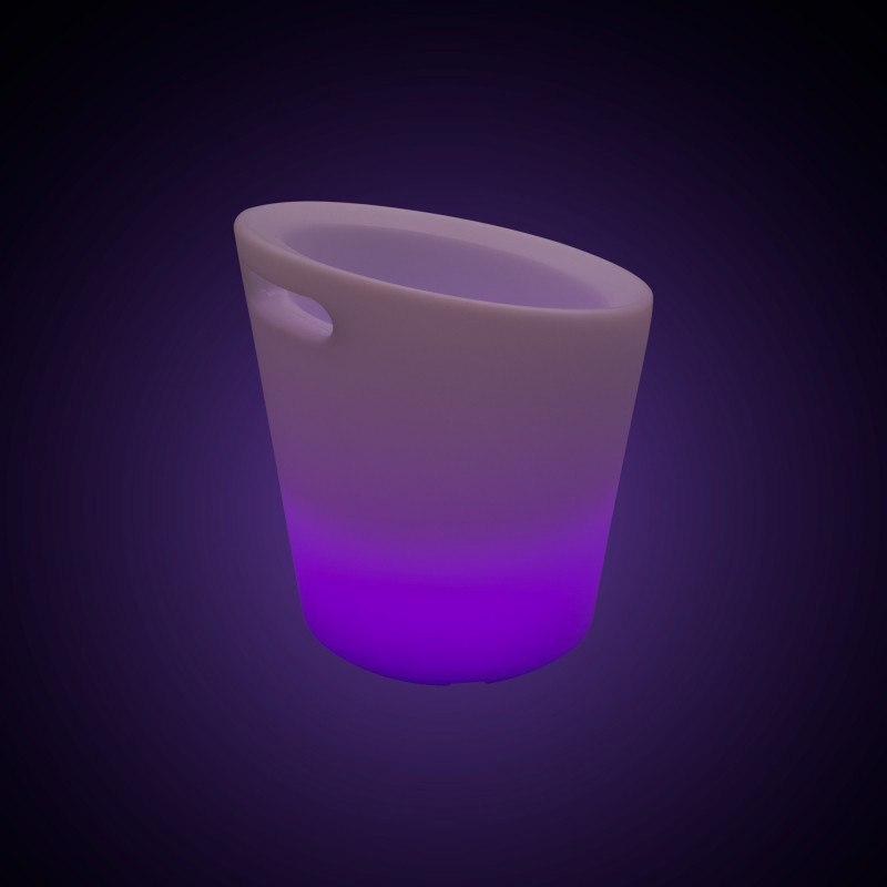 Lichtgevende ijsemmer ideaal voor het toevoegen van een modern en stijlvol tintje aan elke ruimte. Pas de verlichting aan met zachte of levendige tinten.
